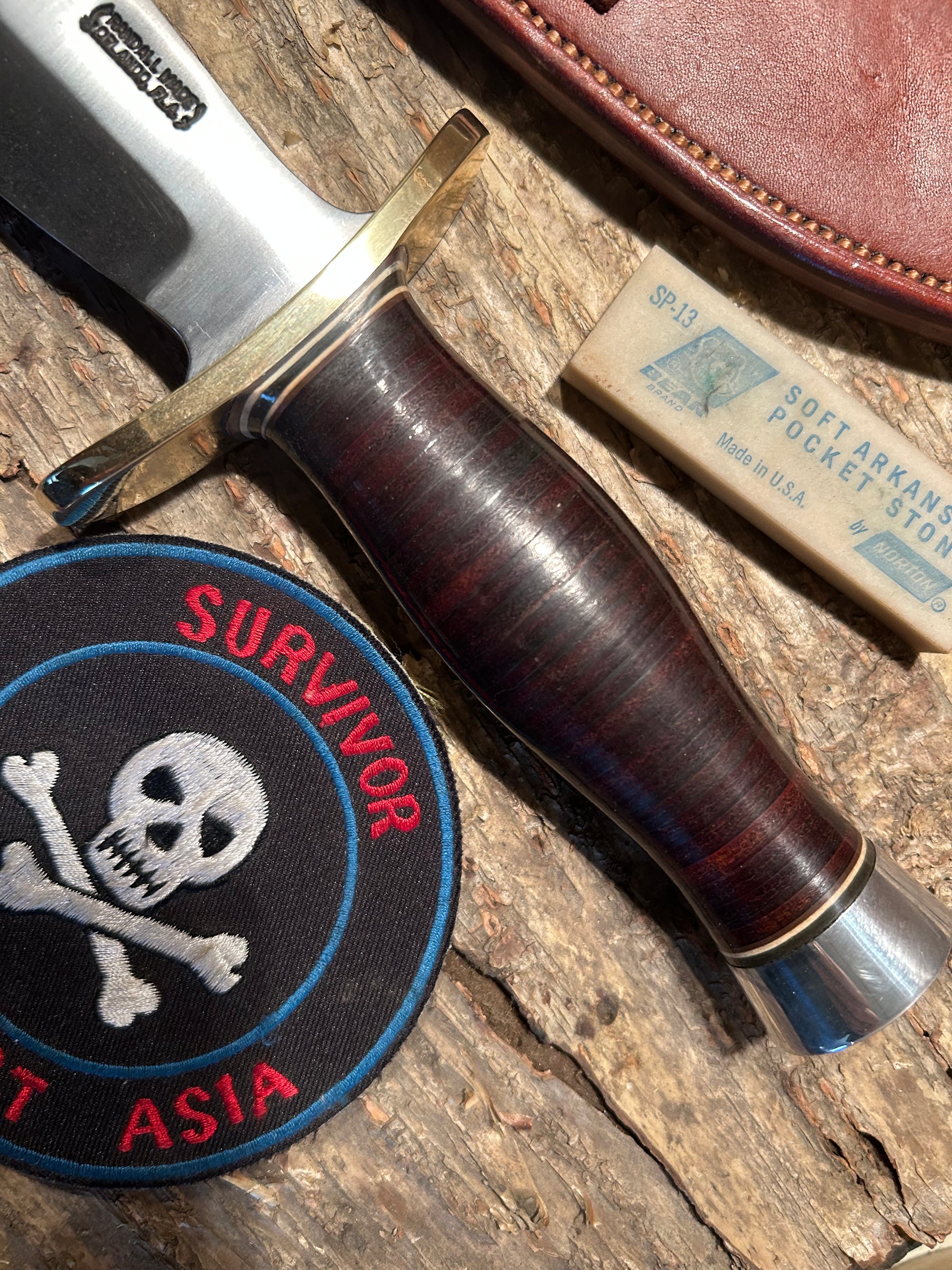 Randall Model 12-8 Big Bear Bowie 1971 Rough Back Sheath White Stone Exc condition