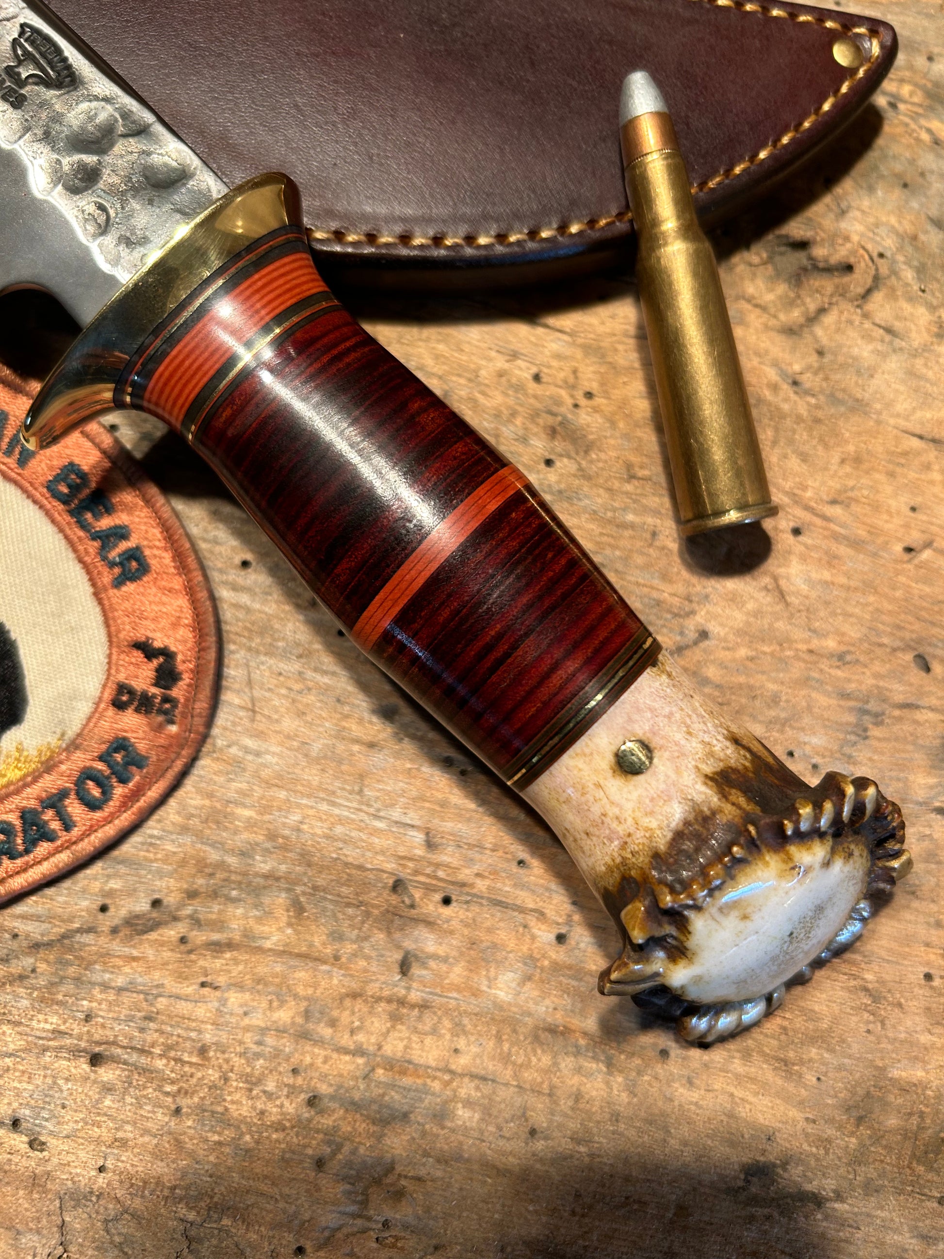 Treeman 7" Hammermark Camp Knife Horse Hide Crown stag