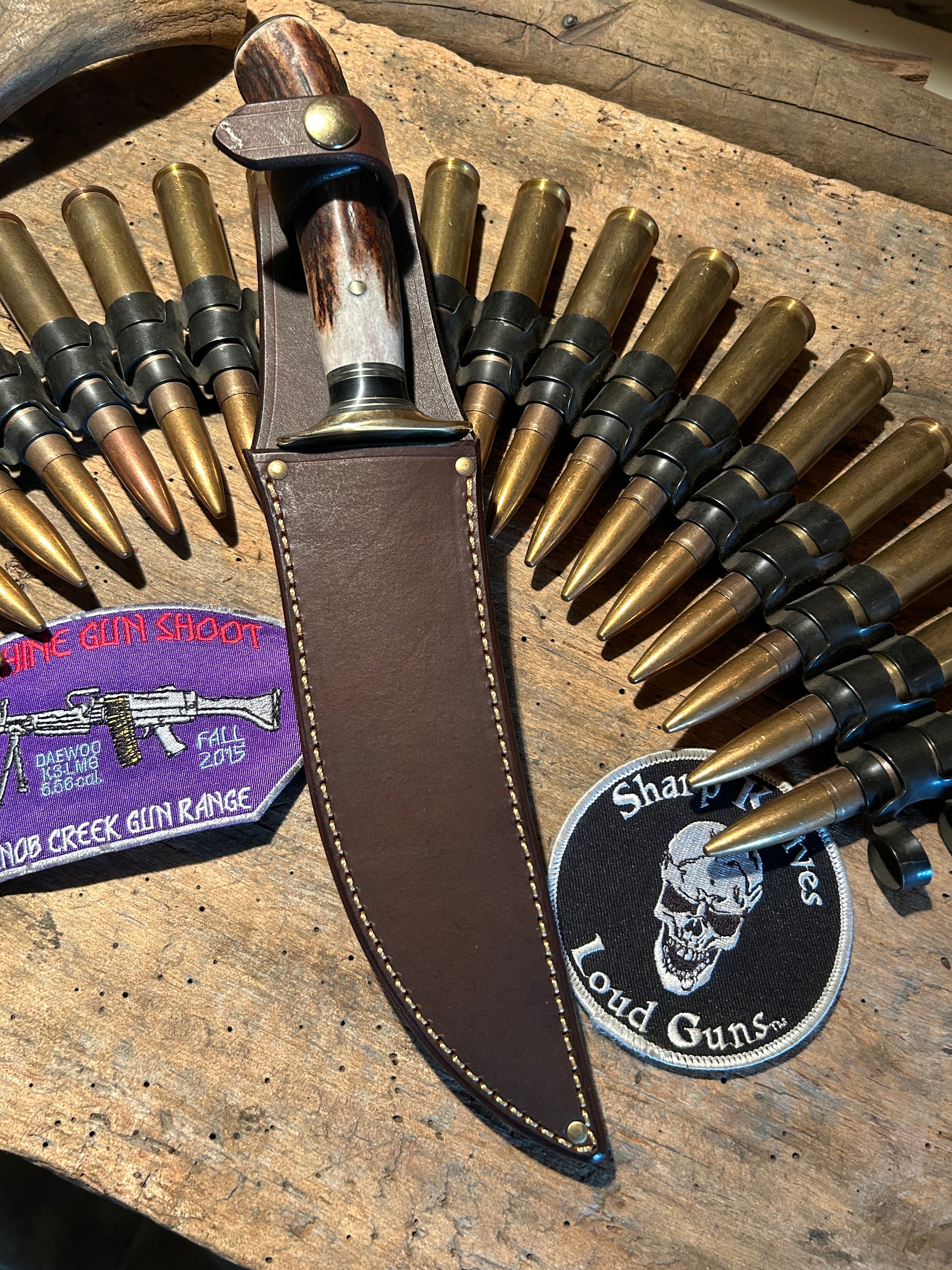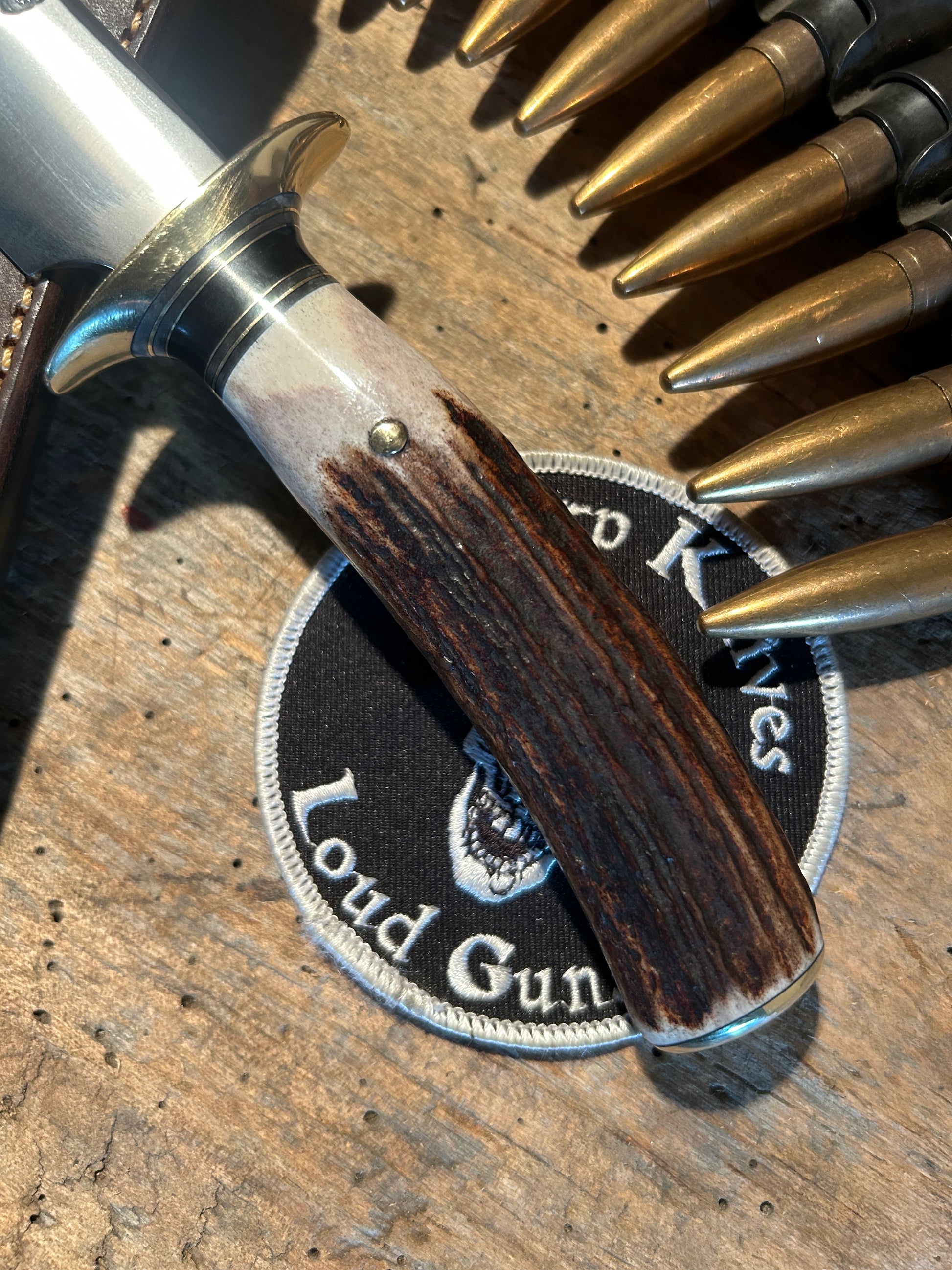 Treeman Double Skull Fighter 7" Blade Brass Guard Stag Handle