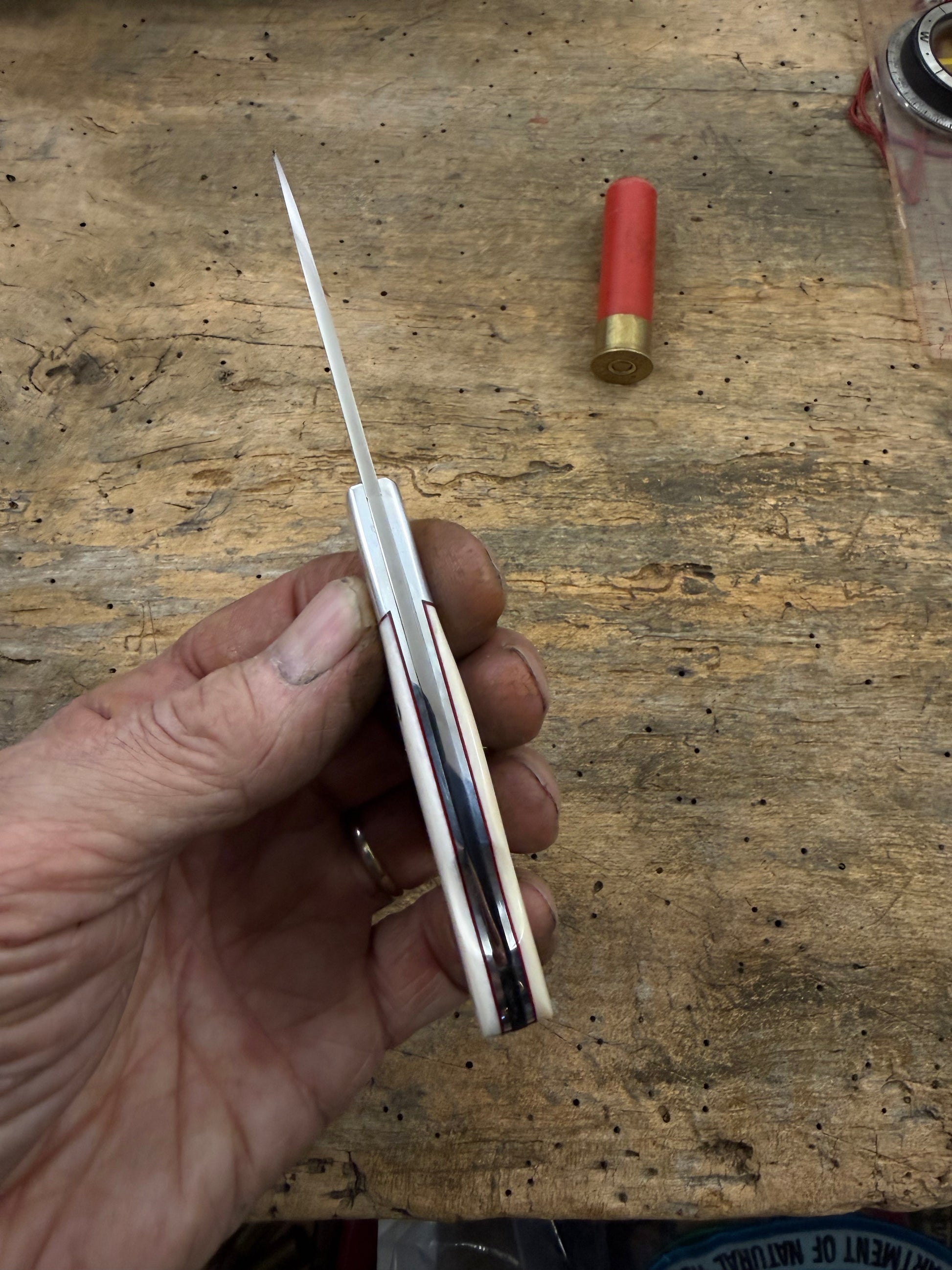 I bought 100s of Bill Davis knives direct from Bill back is the day for resail. He was a very sought after knife maker and always sold out at every knife show. . He made some really great knives and many of the Loveless style drop points and semi sinners. . His knives have a perfect fit and finish. This one has 3" blade and about 6" OAL. ATS-34 steel. Aluminum bolsters and a pinned artifact walrus ivory handle. Highly polished and in perfect condition. Priced to sell. There out there on the web for around $400.00. Priced to sell for a really good price. Thanks, Jim